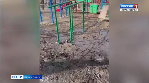 В Ачинском районе в посёлке Мазульский одна из детских площадок превратилась в одну большую грязевую кашу