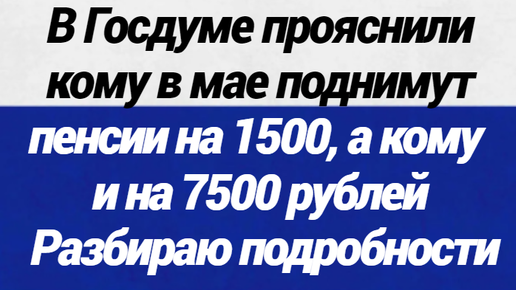 В Госдуме прояснили кому в мае поднимут пенсии на 1500, а кому и на 7500 рублей. Разбираю подробности