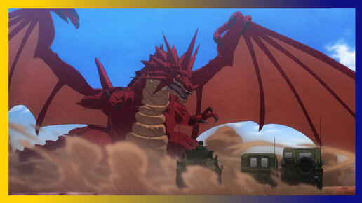 Солдаты 21 века, ведут бой с огнедышащем драконом ›› аниме "Врата: Там бьются наши воины"