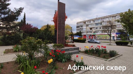 Раннее утро в районе Мойнаки в Евпатории. Афганский сквер. Тишина. Всё цветет, начинает зацветать багряник.