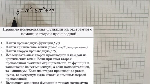 Рассматриваем метод исследования функции на экстремумы при помощи второй производной.