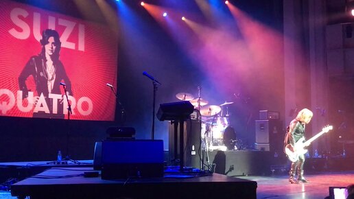 Роскошное соло на бас-гитаре в исполнении "Королевы Рок-н-ролла" Сюзи Кватро образца 2023 года. По прежнему в черном кожаном комбинезоне.