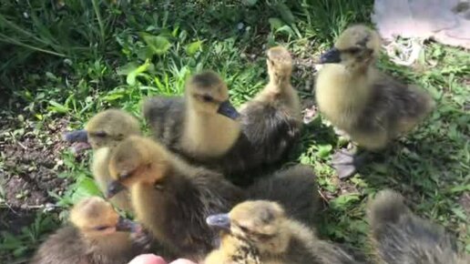 Первая прогулка трёхдневных гусят породы Крупная Серая.