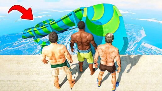 Безумный Спуск со Скользкой Горки в АКВАПАРКЕ с Франклином, Майклом и Тревором в ГТА 5 Моды!