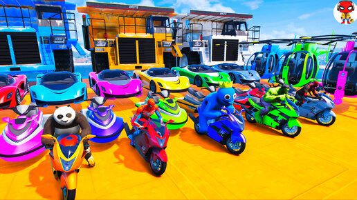 Человек-Паук в ГТА 5! Супер автомобили, мотоциклы, вертолеты, лодки! Эпическая трюковая карта для супергероеи№14