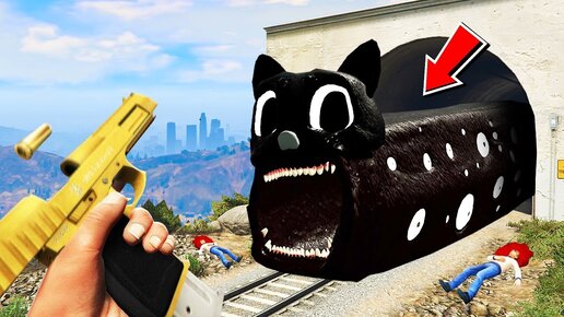 МУЛЬТЯШНЫЙ КОТ ПОЕЗД ПОЖИРАТЕЛЬ в ГТА 5 МОДЫ! CARTOON CAT TRAIN EATER ОБЗОР МОДА в GTA 5 ВИДЕО