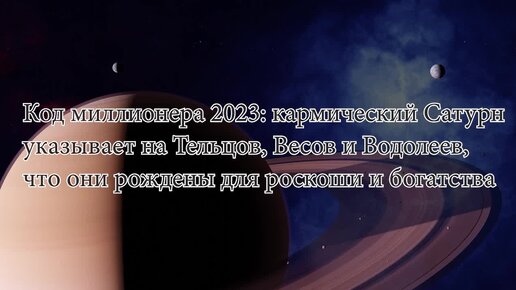 Код миллионера 2023. Кармический Сатурн указывает на Тельцов, Весов и Водолеев, что они рождены для роскоши и богатства