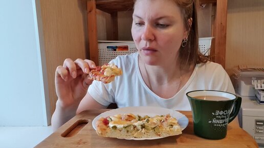 МУКБАНГ. ДОМАШНЯЯ ПИЦЦА С ВЕТЧИНОЙ, ОГУРЦАМИ И ЛУКОМ🍕