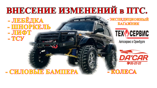 ВНЕСЕНИЕ ИЗМЕНЕНИЙ в ПТС и СТС. ЛЕБЁДКА, СИЛОВЫЕ БАМПЕРА, ЛИФТ, КОЛЁСА, ЭКСПЕДИЦИОННЫЙ БАГАЖНИК.