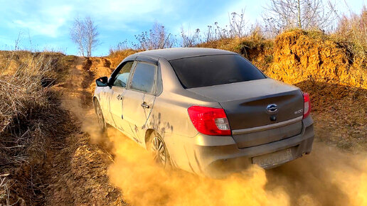 Девушка решили объехать пробку по бездорожью на Datsun on-DO