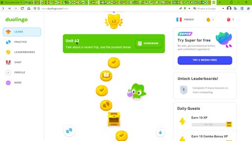 Duolingo is my love. From 1 to 42 level in one day. French. Part 7
