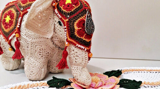 "Индийский слоник из мотивов" крючком. 30 на 16см. 1ЧАСТЬ