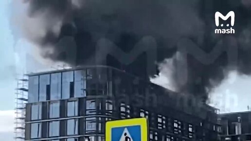 Огонь на крыше строящегося здания ЖК "Виктория Парк"
