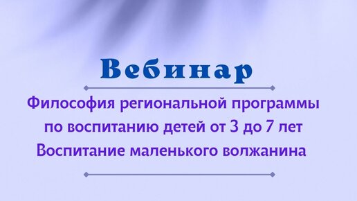 Философия региональной программы по воспитанию детей от 3 до 7 лет Воспитание маленького волжанина