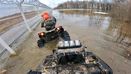 НЕ УТОПИЛИ!? Весенний ПОЛНОВОДНЫЙ выезд! Два квадроцикла_ BRP Renegade XMR & Kawasaki BRUTFORCE