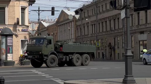 Колонна военной техники движется по Петербургу. В городе проходит репетиция парада 9 мая