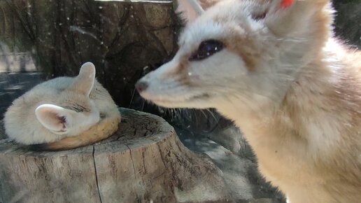 Очень смешной и чудесный фенек лисенок стучит по стеклу