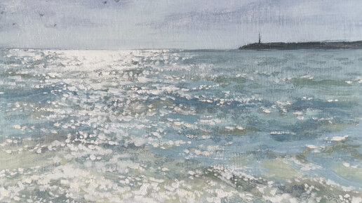 Блики на воде. Морской пейзаж маслом.