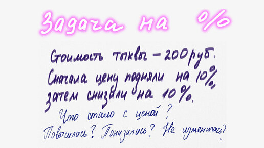 Популярная школьная задача на проценты - сначала цену повысили на 10%, а потом на 10% понизили. Разбираем почему цена в июне станет ниже.