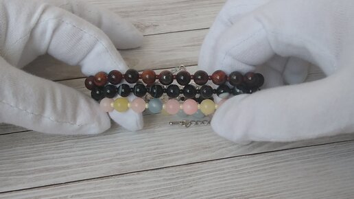 Браслеты из натуральных камней: чёрный агат, кварц и бычий глаз глазковый кварц