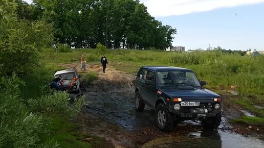 УАЗ порвал Ниву, вытащили только лебедкой