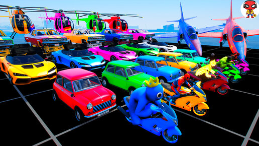 Человек-Паук в ГТА 5! Супер автомобили, мотоциклы, вертолеты, лодки! Эпическая трюковая карта для супергероеи№15