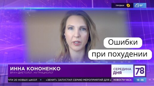 Ошибки при снижении веса. Диетолог нутрициолог Инна Александровна Кононенко. СП