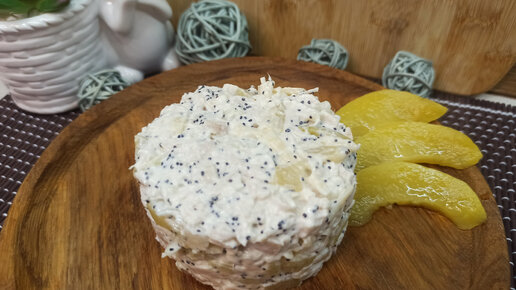 Очень интересный салат с курицей, персиками и МАКОМ.