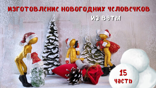 Изготовление новогодних человечков из ваты - 15 часть
