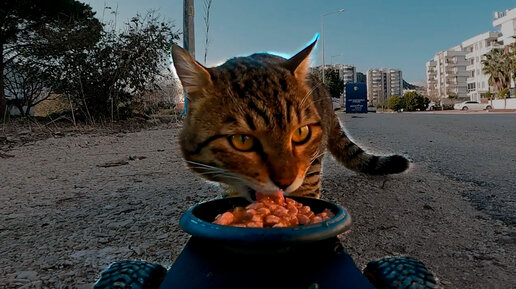 Сюрприз для бездомного кота, еда приехала сама!