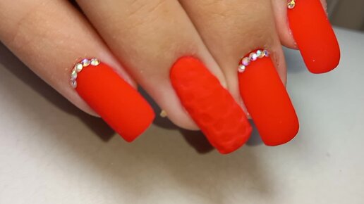 Красный гель лак, дизайн с пудрой