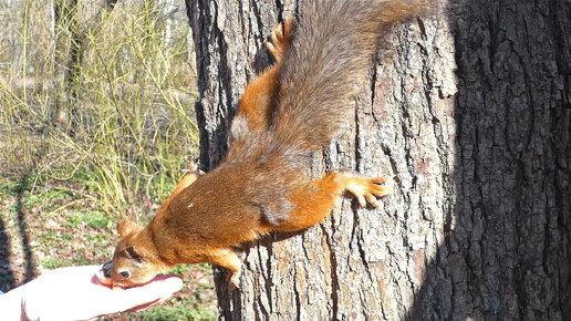 Забавная рыжая белочка спустилась за орешком! Елагин остров. Санкт-Петербург.