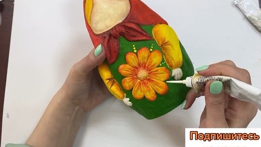 Матрешка из соленого теста. Роспись матрешки акриловыми красками.