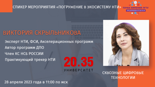 СПИКЕР - ВИКТОРИЯ СКРЫЛЬНИКОВА _ СКВОЗНЫЕ ЦИФРОВЫЕ ТЕХНОЛОГИИ_ ПОГРУЖЕНИЕ В ЭКОСИСТЕМУ НТИ