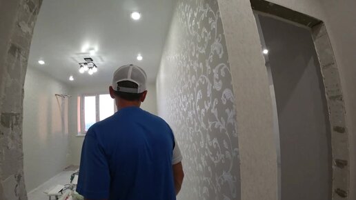 Поклейка обоев в однокомнатной. Новостройка. Обзор натяжного потолка. Наш ремонт.