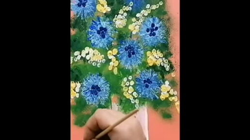 Рисуем букет цветов с помощью поролона и трубочки для коктейля, ватных палочек, легко и просто