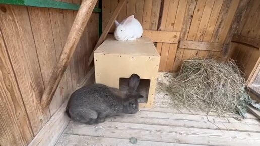 Долгожданная встреча кроликов-гигантов Льва Валентиновича и Снежинки