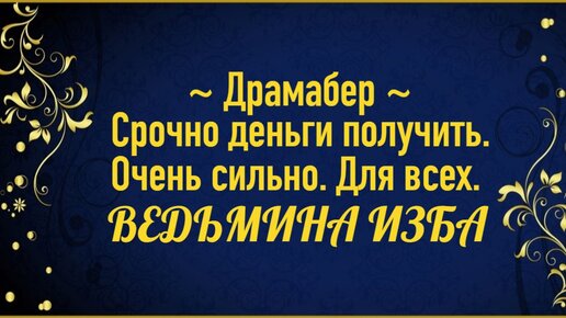 ДРАМАБЕР..СРОЧНО ДЕНЬГИ ПОЛУЧИТЬ..ОЧЕНЬ СИЛЬНО..ДЛЯ ВСЕХ..ВЕДЬМИНА ИЗБА_ИНГА ХОСРОЕВА