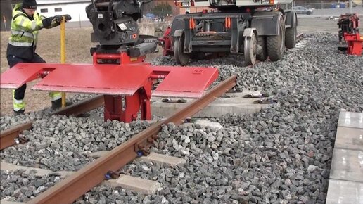 Эта машина заменяет шпалы не снимая рельсы (за считанные минуты)