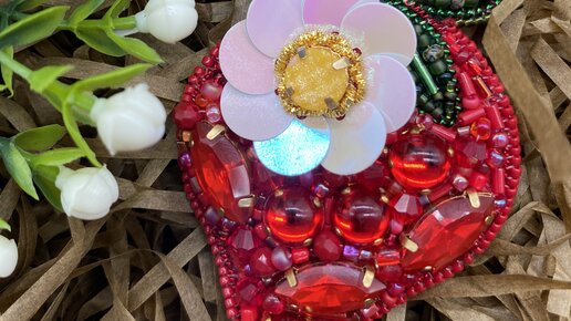 Брошь «Клубника с цветочком» на заказ