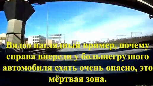 Видео наглядный пример, почему справа впереди у большегрузного авто ехать очень опасно, это мёртвая зона.