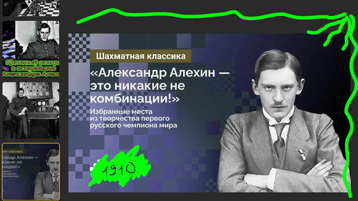Московский сеанс на 22 досках в исполнении А. Алехина: не задумываясь, на автомате делает матовую позицию Гуткевичу уже на 16 ходу, 1910