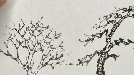 Учимся изображать стволы деревьев. Никакой восточный пейзаж не может обойтись без деревьев или кустов. Видео урок поможет новичкам в живописи.