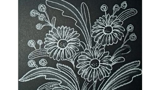 Как просто нарисовать цветы календулы меловым карандашом на чёрной бумаге.