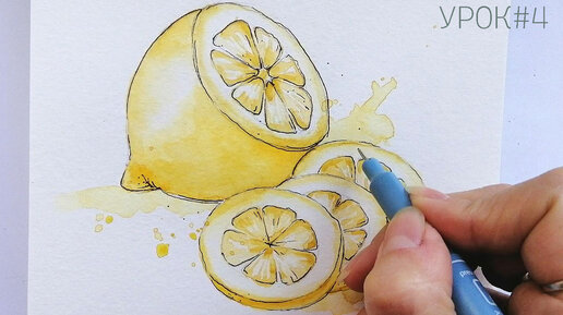 Как нарисовать лимон. Простой скетч акварелью. УРОК ПОШАГОВО!!