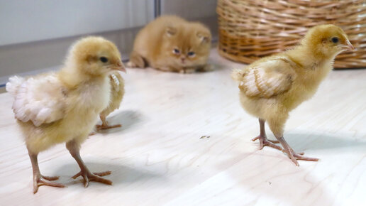 Цыплята напугали котят, день 35
