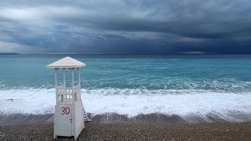 Дождливая погода на Средиземном море в конце апреля, но зато море очень красивого цвета