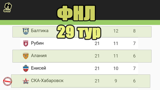 Футбол России. ФНЛ. 29 тур. Результаты. Таблица. Расписание.