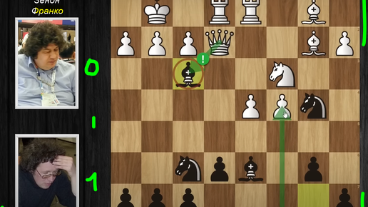 Черный король нашего Андрея Соколова, показав "бицуху", отправил ферзя на постановку мата (Зенон Франко - Андрей Соколов. Памплона 1994, 0-1