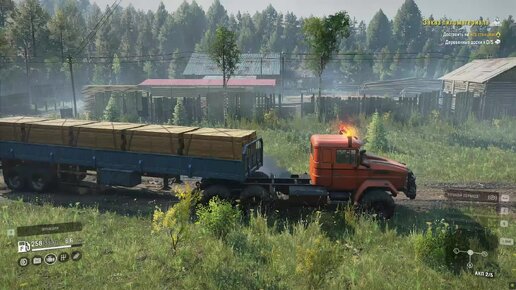 Доставляем доски на вездеходе Тайга по размытой дождями дороге. Симулятор SnowRunner